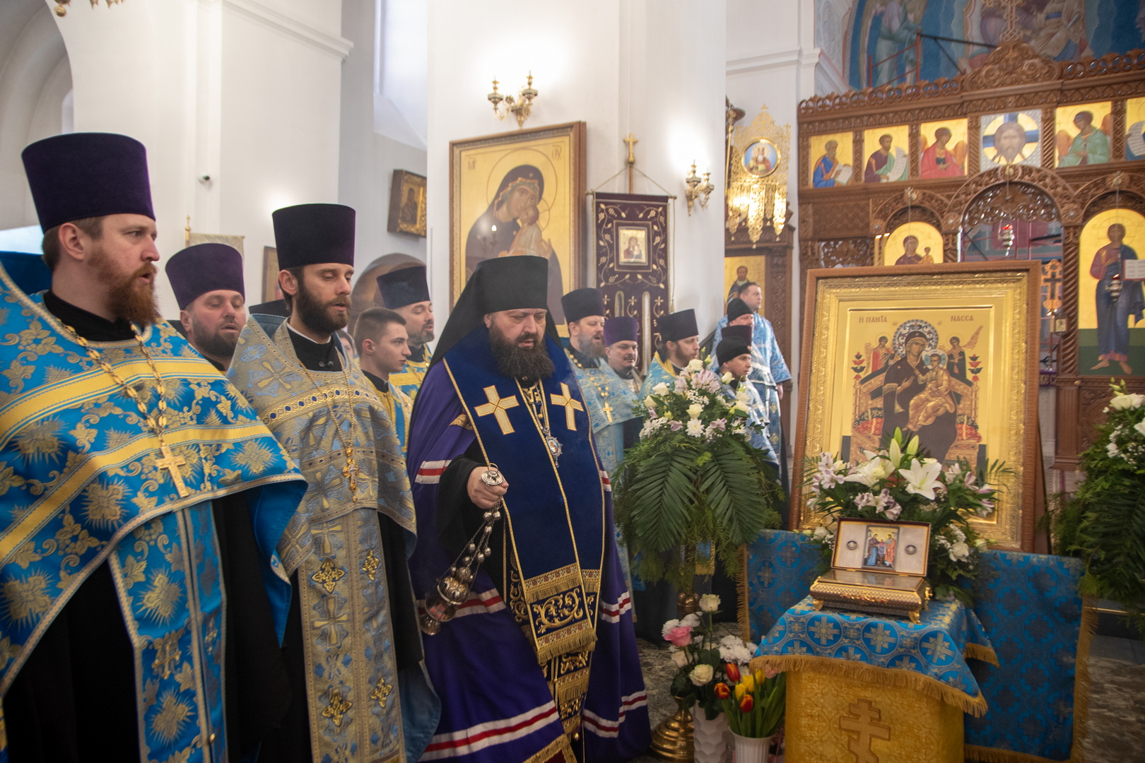 После принесения ковчега в кафедральный собор было совершено молебное пение ко Пресвятой Богородице.