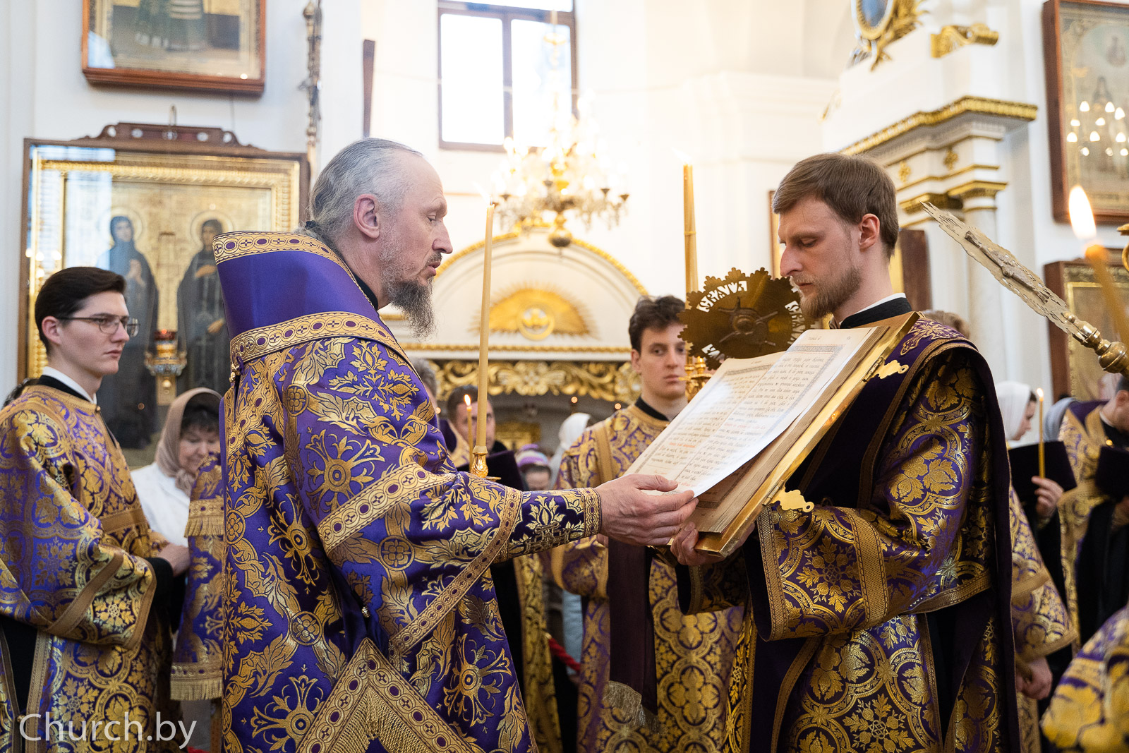 Проповедь перед полиелеем произнес клирик Свято-Духова кафедрального собора города Минска протодиакон Вадим Зарьков.